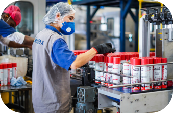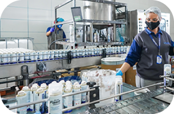 Uma das mais modernas linhas de envase de aerossóis da América Latina. Processos totalmente automatizados com monitoramento constante. Atendimento rigoroso às normas NR12 e padrões internacionais.